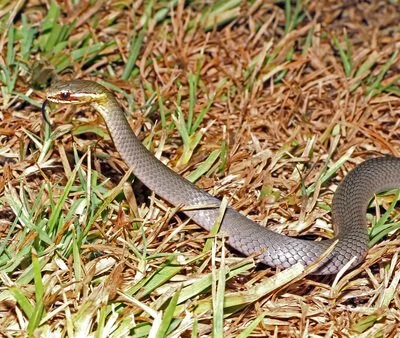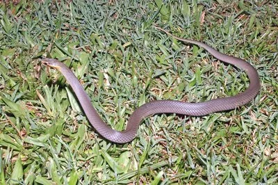 The Marsh Snake, not commonly encountered by snake catchers on the Sunshine Coast. This species is considered mildly venomous. Marsh Snakes are active during the day however they may be active during the night during warmer weather. Marsh Snakes grow to around 60 cm in length on average. Body colour is usually a uniform olive, brown or black above with a dark grey or black belly. This species has a very distinct pattern on their face with two prominent narrow pale-yellowish stripes on each side of the face, one running through the eye and onto the neck area, and the other running below the eye from the snout to the corner of the mouth.