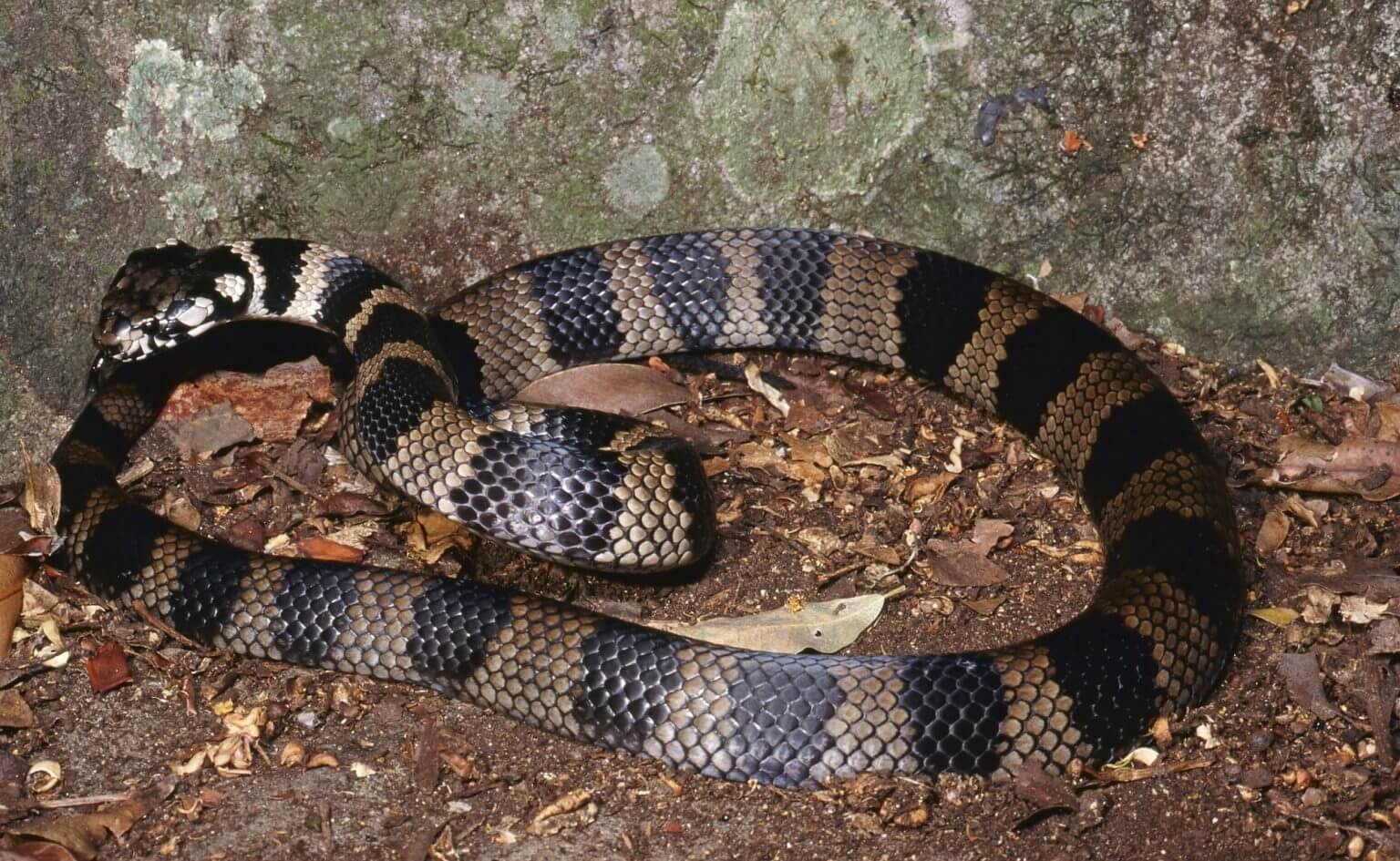 The Stephens’ Banded Snake, this species is rarely encountered by snake catchers on the Sunshine Coast. This species is considered potentially dangerously venomous. This species is quite arboreal meaning they are fairly good climbers and are only active during the night. This species will often shelter in tree hollows and under dense ground cover within rainforest areas.